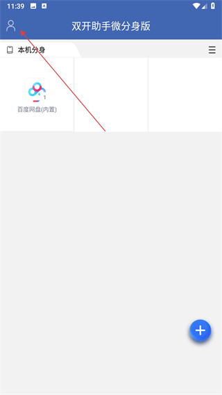 1、打開雙開助手這個應用,看到主界面的左上角,點擊左上角的頭像圖標,進入個人中心頁面。