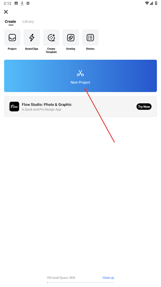 1、打開VN視頻剪輯APP,進入到剪輯的頁面內,點擊×的按鈕回到主頁內。