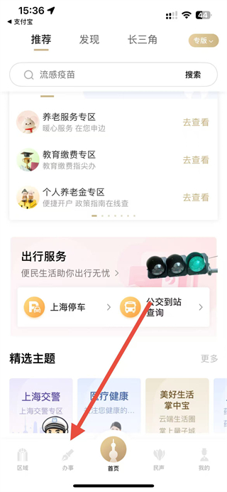 1、在隨申辦app的首頁界面中,點擊底部導航欄的辦事選項,進入辦事相關服務頁面。