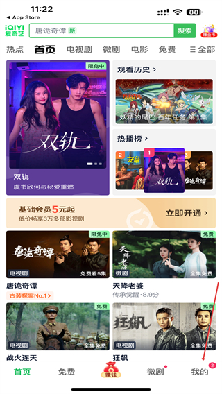 1、打開愛奇藝APP,在首頁導航欄中點擊我的按鈕。