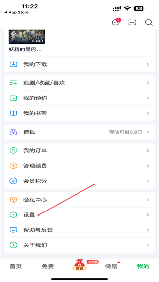 2、在我的頁面中,找到并點擊設置的功能選項,進入設置頁面。
