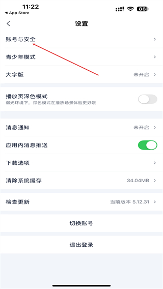 3、在設置頁面點擊賬戶與安全選項,進入賬號安全管理頁面。