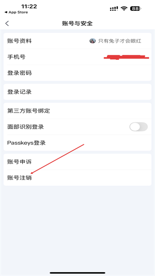 4、在賬號與安全頁面找到賬號注銷選項并點擊,即可完成。