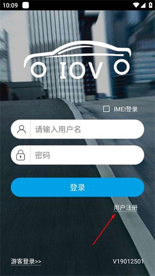 1、進入IOVO軟件登錄界面,找到用戶注冊選項,點擊該選項進入用戶注冊頁面。
