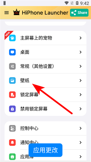 1、在HiPhone Launcher頁面,點擊壁紙選項,進入壁紙設置頁面。