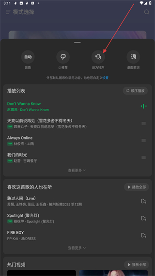 2、在下方彈出的界面內,滑動找到并點擊設為鈴聲的按鈕。