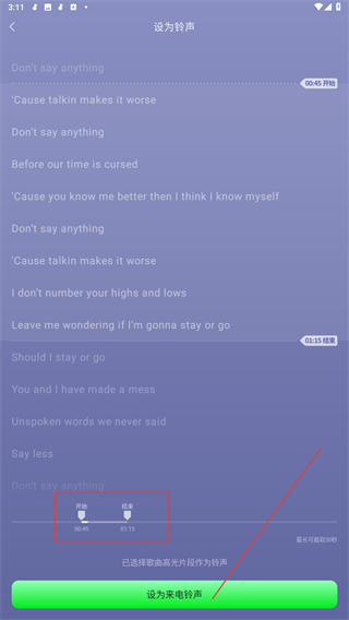 3、進入設為鈴聲的頁面內,設置后點擊設為來電鈴聲即可。