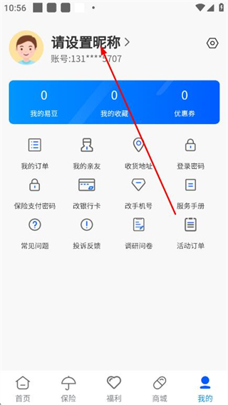 1、打開易復診APP,點擊底部我的選項,進入個人中心頁面。
