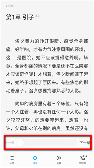 4、在進度調節欄,拖動滑塊即可調整閱讀進度。