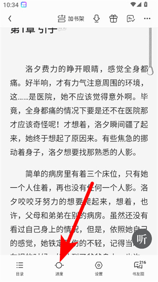 3、在閱讀界面,點擊下方進度選項,彈出進度調節欄。