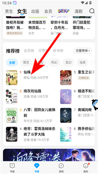 1、在QQ閱讀書城頁面,點擊想要修改字體的書籍,進入書籍詳情頁面。