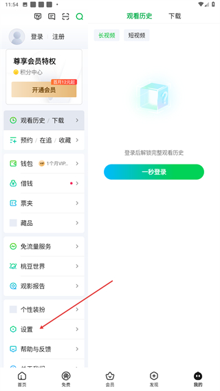 1、打開愛奇藝,點擊底部導航欄最右側的我的按鈕,進入個人中心頁面。