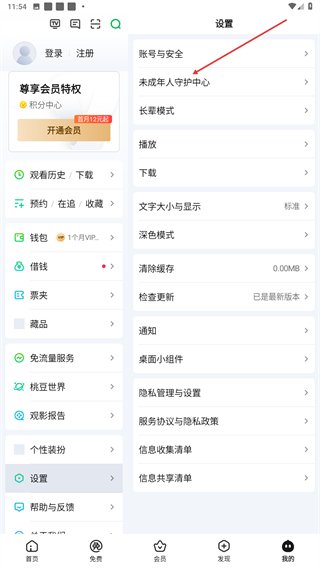 3、在設置頁面中,點擊未成年人守護中心選項,進入青少年模式管理頁面。