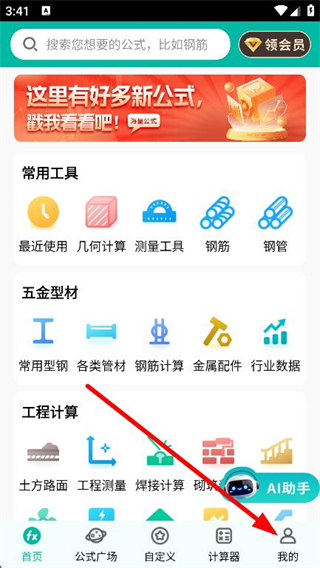 1、打開建工計算器app,點擊底部導航欄的我的。