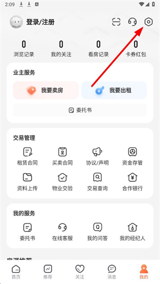 2、在我的頁面中,點擊右上角的設置圖標,進入設置界面。