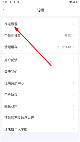 3、在設置頁面,找到并點擊推送設置選項,進入推送設置頁面。