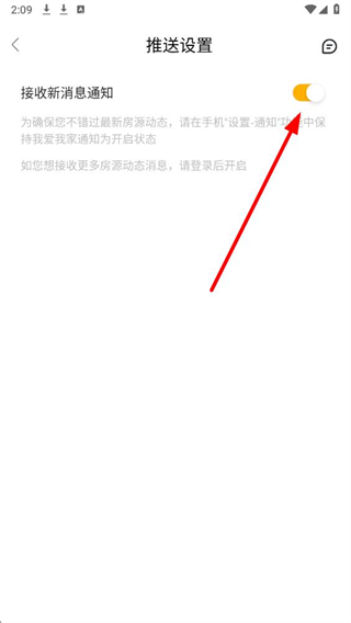 4、在推送設置頁面,點擊接收新消息通知右側的開關按鈕,即可關閉消息通知功能。