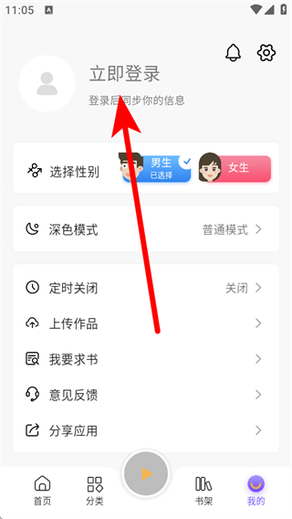 1、在云動聽書首頁,點擊右下角我的選項,進入個人界面。