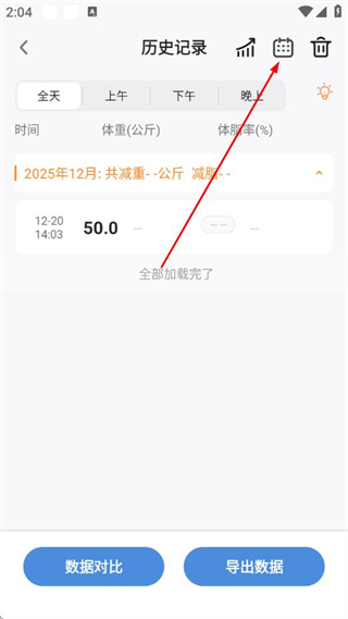 2、進入歷史記錄頁面后,點擊右上角的日歷圖標。
