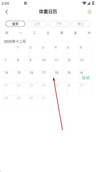 3、在體重日歷頁面,即可查看對應日期的歷史體重數據。