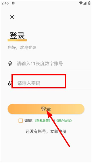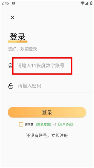 3、在登錄頁面中,點擊輸入框輸入賬號。