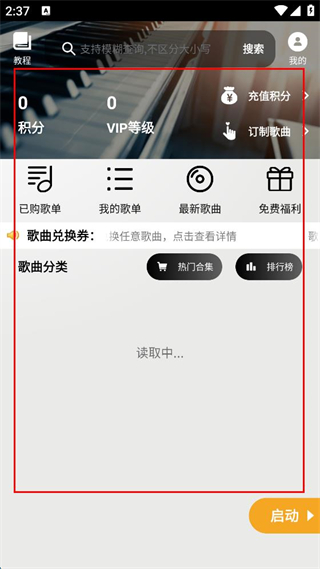 4、進入軟件首頁,可查看積分、VIP等級及歌曲分類等內容。