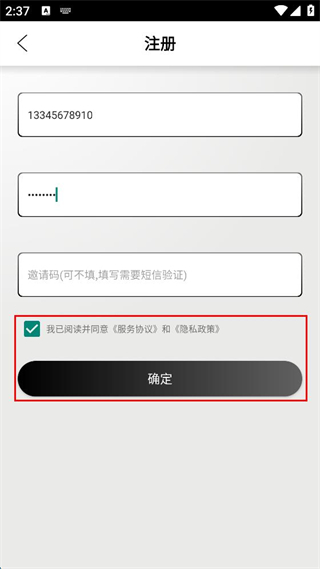 3、勾選我已閱讀并同意服務協議和隱私政策,點擊確定。