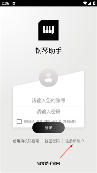 1、進入軟件登錄頁面,點擊注冊新賬戶。