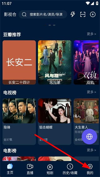 1、打開影視倉APP,點擊頁面底部導航欄的我的選項。