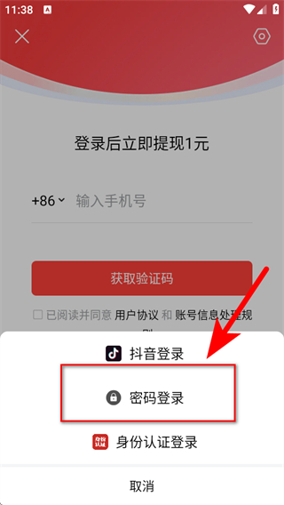 3、選擇密碼登錄選項,切換到賬號密碼登錄的表單界面。