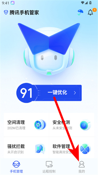 1、在騰訊手機管家首頁,點擊底部我的選項,進入個人中心頁面。
