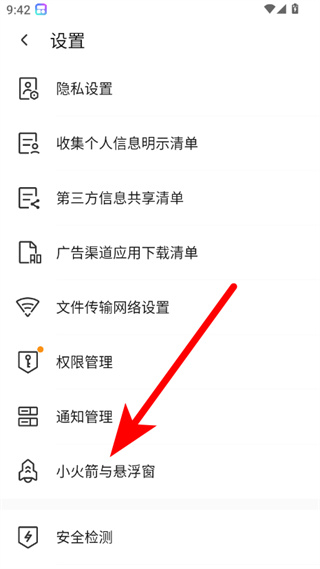 3、在設置界面,點擊小火箭與懸浮窗選項,進入對應功能頁面。