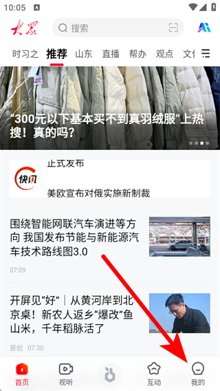 1、打開大眾新聞APP,點擊底部我的按鈕,進入個人的頁面。