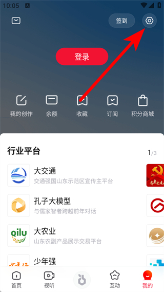 1、打開大眾日報客戶端,點擊底部導航欄右側的我的圖標,進入個人中心頁面,可以查看創作、收藏等個人功能入口。