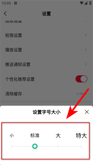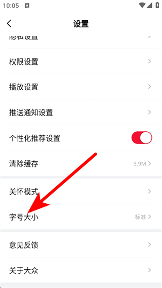 3、在設置的頁面,點擊字號大小,彈出設置字號大小的選擇框。