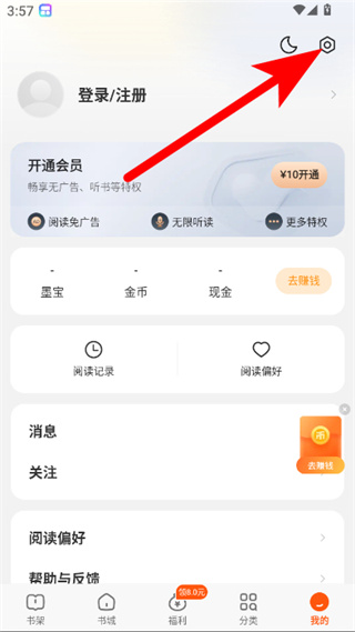 1、在七讀免費閱讀小說我的頁面,點擊右下角我的選項,進入個人頁面。