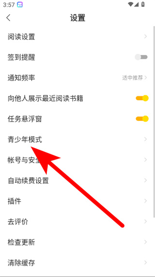 3、在設置界面,點擊青少年模式選項,進入對應設置頁。