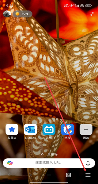 1、在瀏覽器主界面點擊底部搜索或鍵入URL欄,激活并使用輸入框,為查找信息做準備,開啟搜索流程。