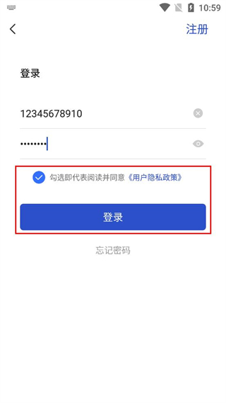 4、勾選代表閱讀并同意用戶隱私政策的選項,找到登錄按鈕并點擊,完成登錄操作。