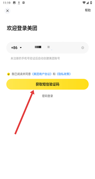 3、在填寫好手機號后,點擊獲取短信驗證碼按鈕,準備進行驗證操作。