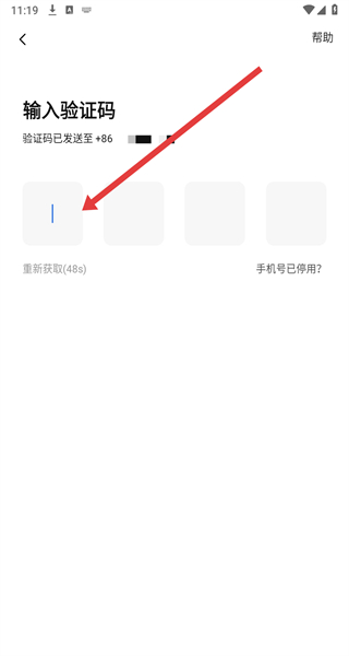 4、在跳轉到驗證頁面中,點擊輸入框填寫收到的短信驗證碼,即可完成登錄。