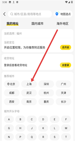 3、在地址選擇頁面選擇“上?!?,完成城市切換。