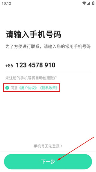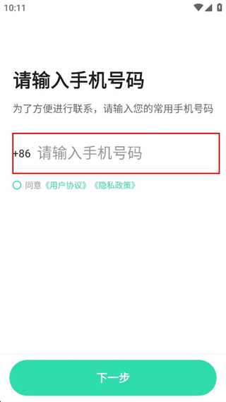 2、在請輸入手機號碼頁面,填寫個人常用的手機號碼并勾選同意協議。