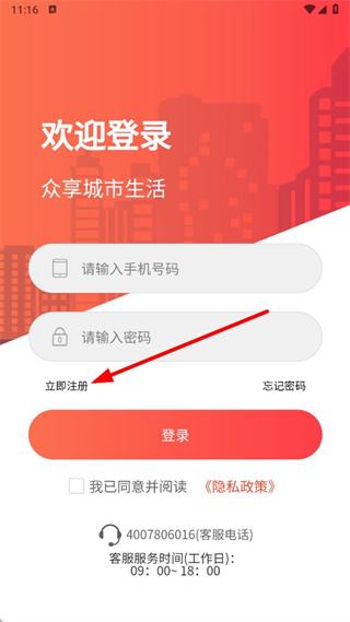 3、在登錄頁面點擊立即注冊選項,進入注冊手機號輸入頁面。