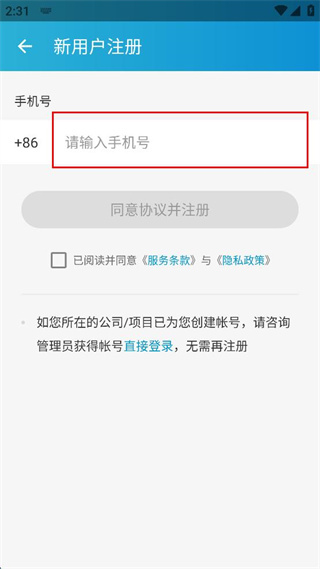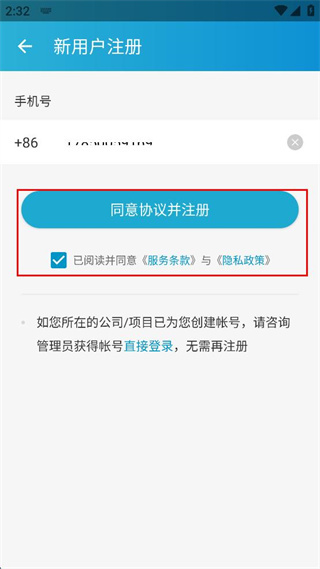 3、勾選已閱讀并同意服務條款與隱私政策,點擊同意協議并注冊。