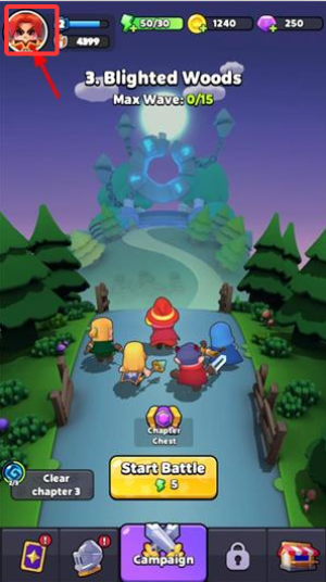 1、進入游戲后在主界面點擊開始戰斗進行闖關得經驗金幣。
