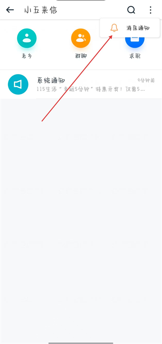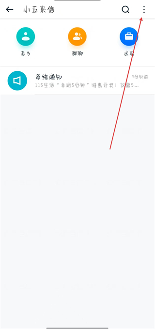2、在小五來信頁面,點擊右上角的三點圖標。