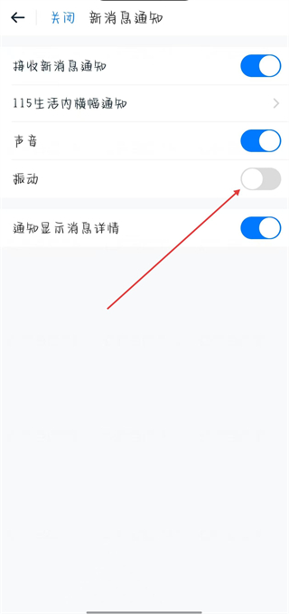4、進入新消息通知頁面后,點擊振動開關按鈕即可。