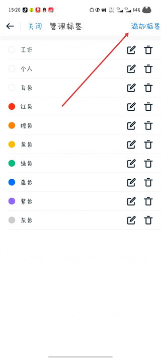 3、在管理標簽頁面,點擊添加標簽選項。