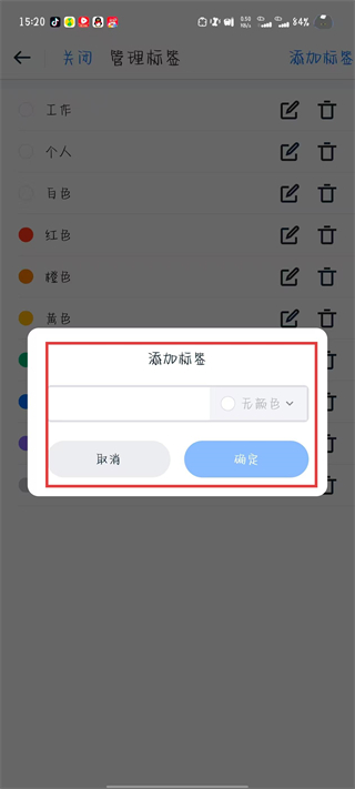 4、輸入標簽名稱,選擇標簽顏色,點擊確定。
